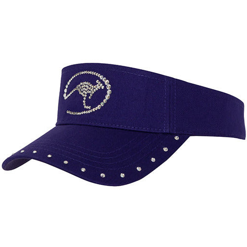 This flashy visor is rimmed with Swarovski crystals and adorned with an elegant Roo logo.