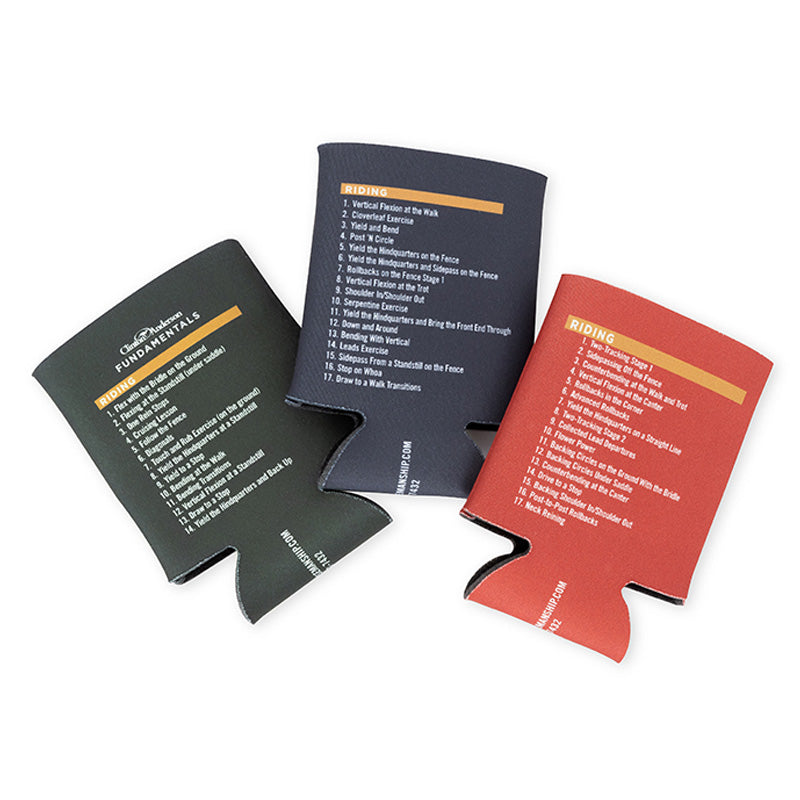Keep the list of Method exercises within easy reach with our koozies. Available for Fundamentals, Intermediate and Advanced. One side of the koozie lists the level's groundwork exercises and the other side lists the riding exercises.